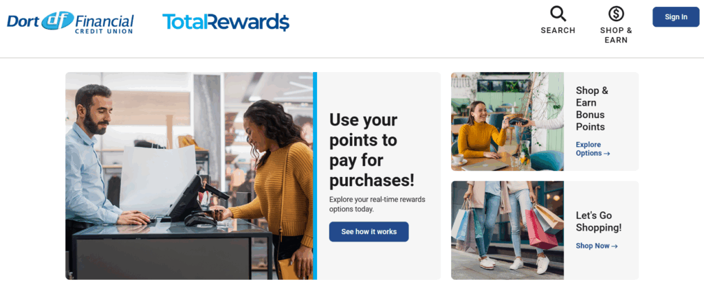A simple, easy to use program that earns you points each time you use your Dort Financial Visa Signature or Platinum cards. Wherever you shop, and on everything you buy - you will earn points for money spent. The more you shop, the more you earn.